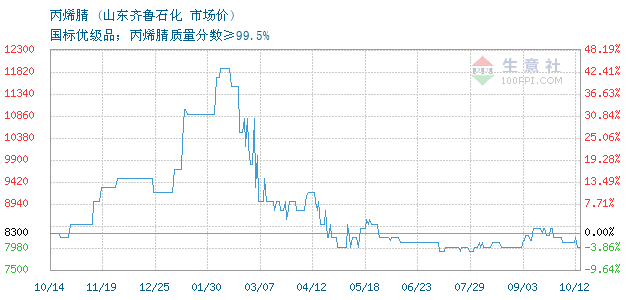 10月11日山东齐鲁石化关于丙烯腈的报价为8000元/吨。丙烯腈的规格:国标优级品;丙烯腈质量分数≥99.5%。该报价有效期为3天。报价提供方:上海溶和化工有限公司。