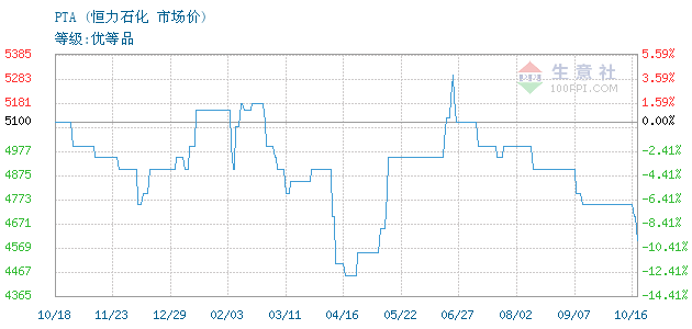 10月13日恒力石化关于PTA的报价为4750元/吨。PTA的规格:等级:优等品。该报价有效期为3天。报价提供方:上海溶和化工有限公司。