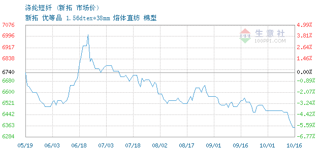 10月16日新拓关于涤纶短纤的报价为6350元/吨。涤纶短纤的规格:新拓 优等品 1.56dtex*38mm 熔体直纺 棉型 。该报价有效期为1天。报价提供方:永利熵策 (北京) 互联科技有限公司。