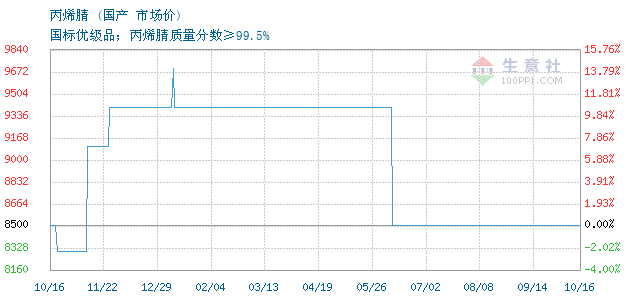 10月16日国产丙烯腈为8500元