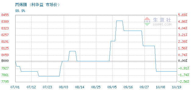 10月18日利华益丙烯腈为7900元