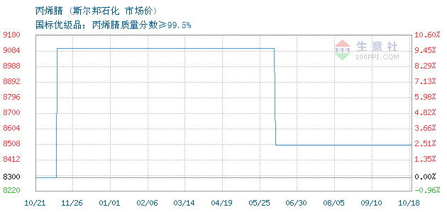 10月18日斯尔邦石化丙烯腈为8500元