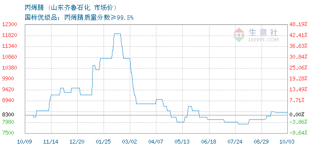 10月03日山东齐鲁石化丙烯腈为8400元