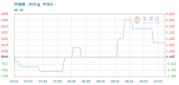 10月03日利华益丙烯腈为8150元