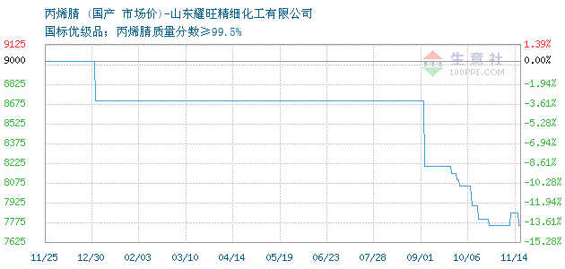 11月14日国产关于丙烯腈的报价为7750元/吨。丙烯腈的规格:国标优级品;丙烯腈质量分数≥99.5%。该报价有效期为1天。报价提供方:山东耀旺精细化工有限公司。