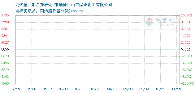 11月15日斯尔邦石化关于丙烯腈的报价为8850元/吨。丙烯腈的规格:国标优级品;丙烯腈质量分数≥99.5%。该报价有效期为3天。报价提供方:山东烨阳化工有限公司。